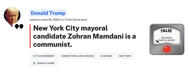 Zohran Mamdani can quote Marx, talk about “seizing the means of production” and eliminating private property, and PolitiFact will say it is a lie that he is a communist. They justified it by noting that he is not running on a platform that is explicitly communist. So there.