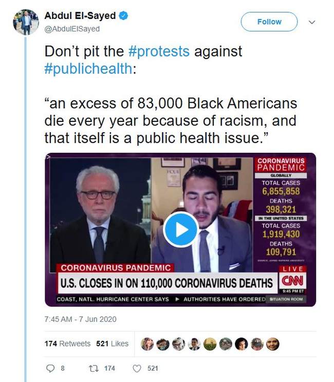 He’s also one of the health experts who decided that mass protests were okay so long as they were on behalf of BLM. All of these tweets were found by Andrew Kaczynski: