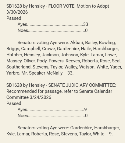 Since there was no objection to SB1628 during Monday’s Senate floor session, the bill remained a part of the consent calendar and passed 33-0 along with all the other items.