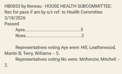 There were no comments or questions from subcommittee members, and the vote was 5-2 in favor along party lines. The bill will now proceed to the full House Health Committee.