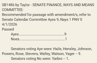 There were no questions or comments from committee members, and the vote was 9-1 along party lines in favor of advancing SB1486 to the full Senate.