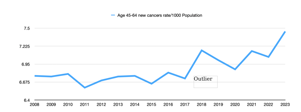 Cancer rates in the 45-64 range rose by 8 per cent in 2023 compared with the 2015-2019 average.