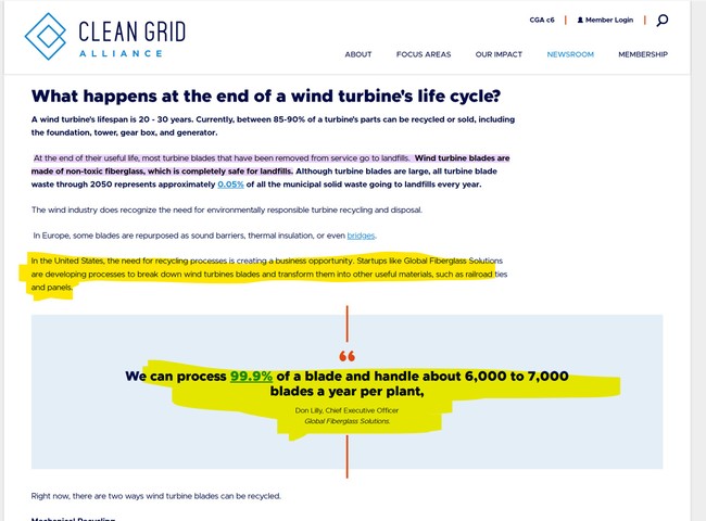 This is the language they’re using in releases touting the ban (and, of course, the ‘yeah, but’)… and what they hope to have ready to handle the blades that keep their lights on. It’s all EU argle-bargle about ‘circularity hubs,’ new waste management practices ‘EMERGING’ (IOW not actually viable and proven yet), more and more companies ‘getting involved,’ and the always deadly ‘creative and innovative solutions.’