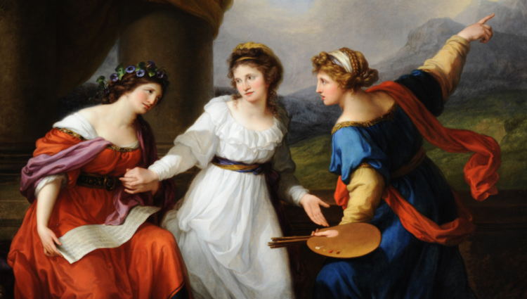The featured image is by Angelica Kauffman, “Self-portrait Hesitating between the Arts of Music and Painting,” courtesy of Wikimedia Commons.