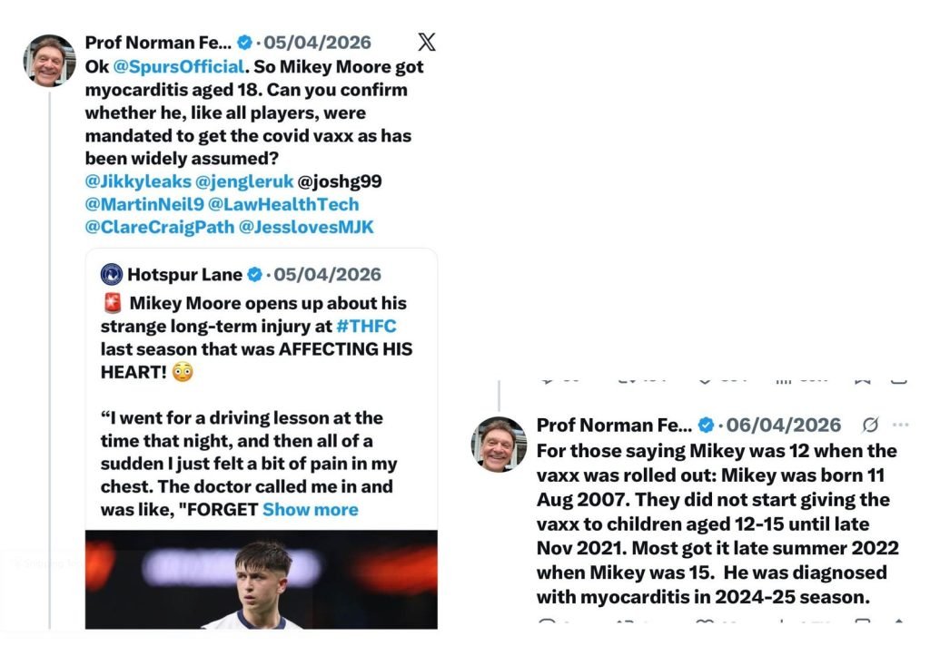 Moore was diagnosed with myocarditis in 2024/25. Like most professional footballers, he was very likely vaccinated against covid in 2022. My post simply asked whether that was the case: