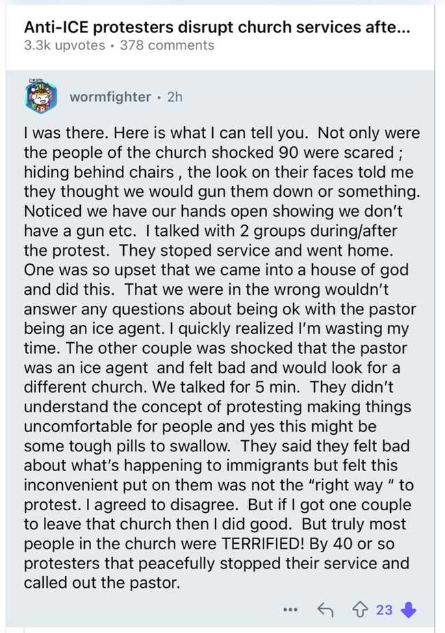 He is amazed that people were ‘terrified’ by his group of heathens ‘peacefully’ stopping their service and ‘calling out their pastor.’