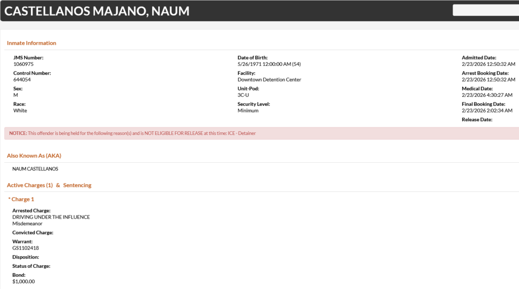 54-year-old Naum Castellanos Majano – arrested February 23