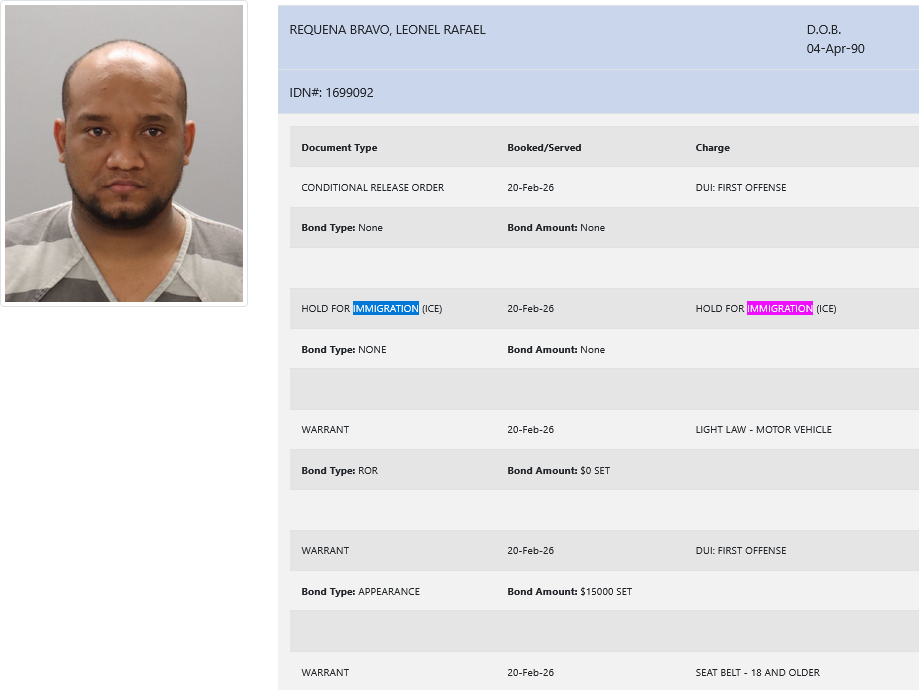 35-year-old Leonel Rafael Requena Bravo – arrested February 20