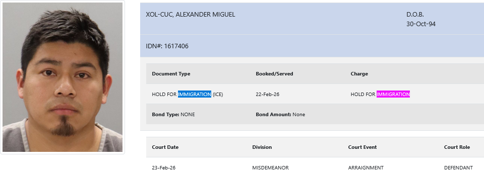 31-year-old Alexander Miguel Xol-Cuc – arrested February 22