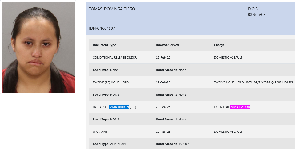 22-year-old Dominga Diego Tomas – arrested February 22