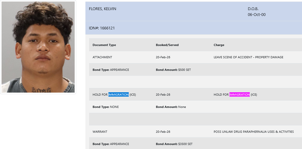 25-year-old Kelvin Flores – arrested February 20