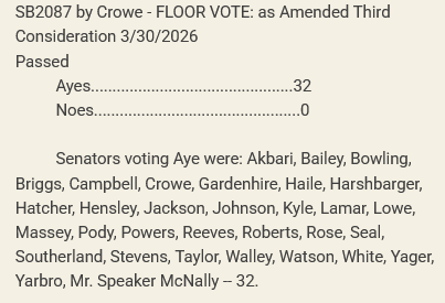 The Senate was much less divided, unanimously passing the bill 32-0 on March 30.