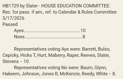 The legislation’s companion Senate Bill 2636 is scheduled to be heard in the Senate Education Committee today, March 18th, 2026.