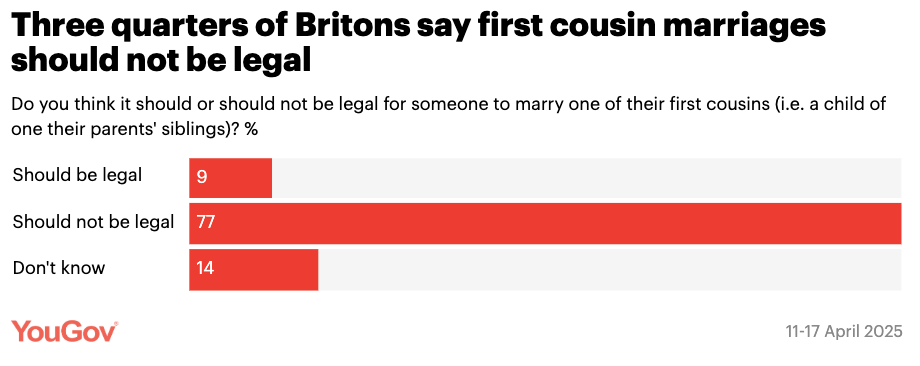 Nor is this a fringe position. Nearly 80 per cent of the British public, according to recent polling by YouGov, say they support a ban on cousin marriage.