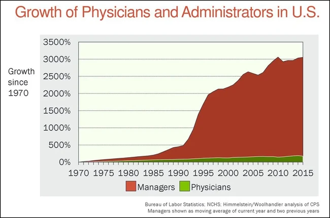 That’s why the growth in healthcare administrators has been astronomical, while the number of actual healthcare providers has barely increased compared to the population.