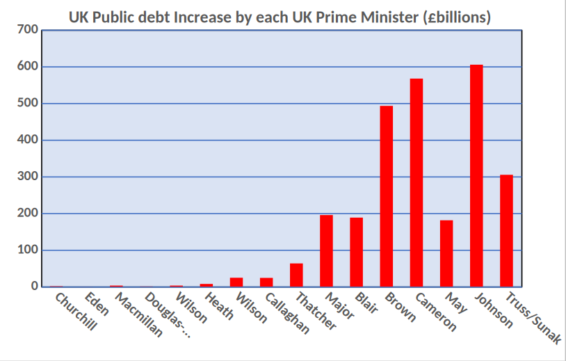 There we have it, the reasons for that £2,800,000,000,000 debt which in 2023/24 cost the country an interest payment of £107,000,000,000.