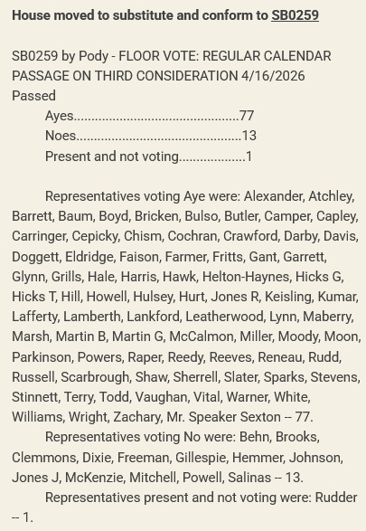Legislation that seeks to provide parents with greater transparency regarding their children’s medical treatments passed on the House floor last week in a 77 to 13 vote along party lines with Republican Representative Iris Rudder (R-Winchester-District 39) declining to cast a vote.