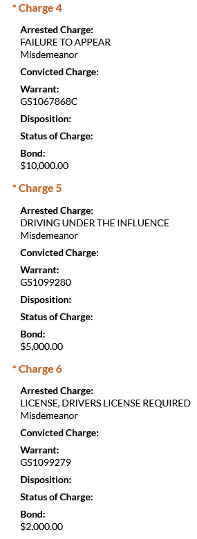 - Ac-cu was charged with four counts of failure to appear, driving under the influence, and driver’s license required. He was booked on a $47,000 total bond. The failure to appear charges stem from an incident from April 11, 2025, in which he was charged with DUI, alcohol consumption under the age of 21, violation of the open container law, and leaving the scene of an accident.