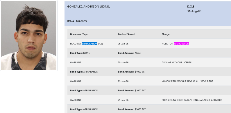 27-year-old Anderson Leonel Gonzalez – arrested January 25