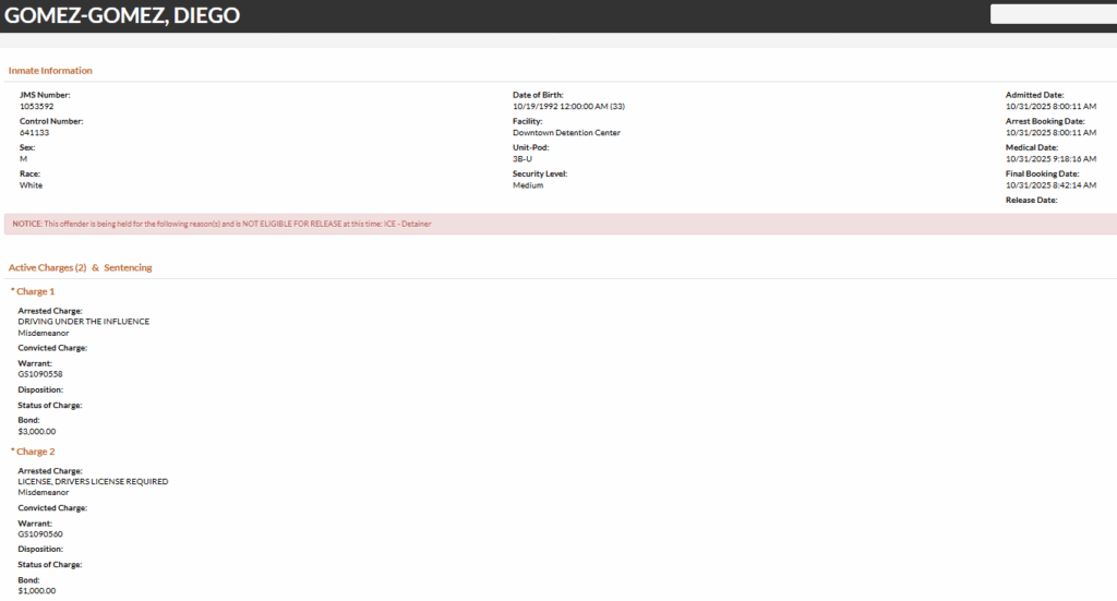 33-year-old Diego Gomez-Gomez – arrested October 31