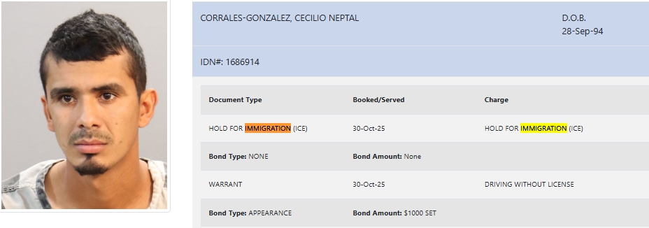 Knox County police recently arrested 31-year-old Cecilio Neptal Corrales-Gonzalez on October 30. Gonzalez was charged with driving without a license and was booked on a $1000 bond.