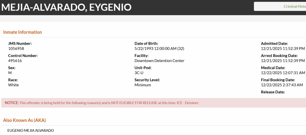 32-year-old Eygenio Mejia-Alvarado – arrested December 21