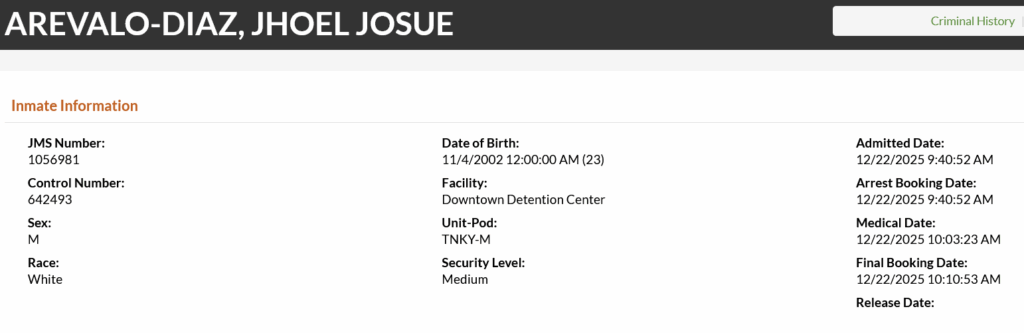23-year-old Jhoel Josue Arevalo-Diaz – arrested December 22