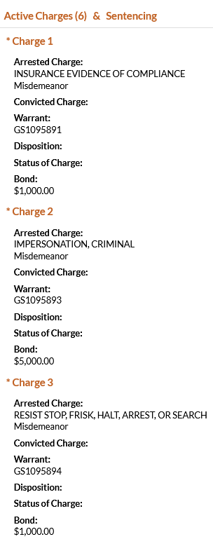 • Marenco was charged with criminal trespassing and was booked on a $500 bond. He was found guilty of no driver’s license in July 2024 and was also charged with theft, but that charge was dismissed by the state.