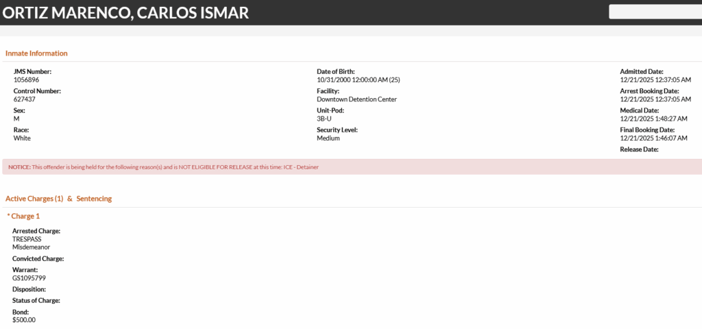 25-year-old Carlos Ismar Ortiz Marenco – arrested December 21