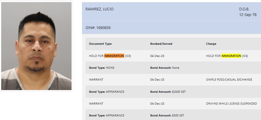 • Ramirez was charged with simple possession/casual exchange and driving while license suspended. He was booked on a $3000 bond.