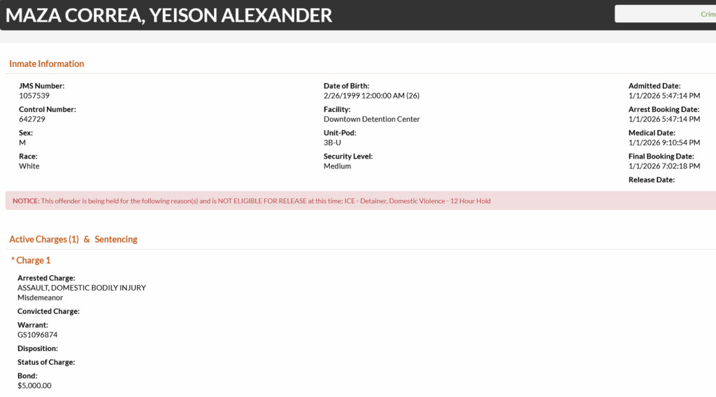 26-year-old Yeison Alexander Maza Correa – arrested January 1