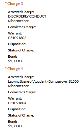 - Jiminez was charged with failure to appear on a misdemeanor charge of driving under the influence stemming from an incident that occurred on February 4, 2023. He was booked on a $10,000 bond.