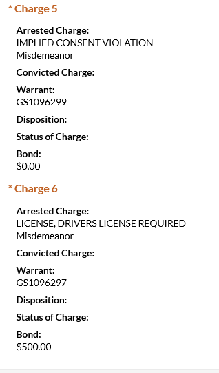 • Chub was charged with DUI: First Offense & Public Intoxication. His bond was set at $500.