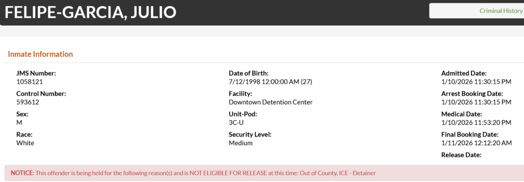 27-year-old Julio Felipe-Garcia – arrested January 10