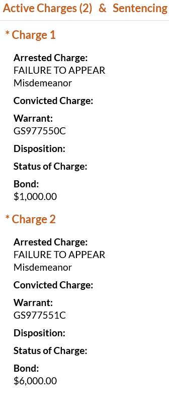 • Francisco was charged with DUI (first offense), driving without a license, driver to exercise due care, and driving on roadways laned for traffic. He was booked on a $5000 bond.