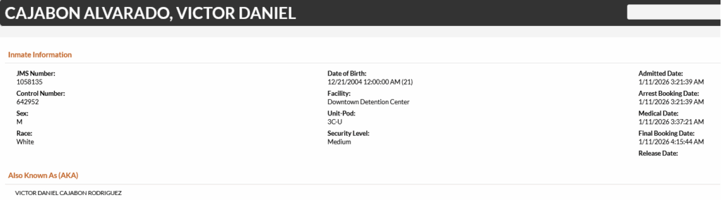 21-year-old Victor Daniel Cajabon Alvarado – arrested January 11