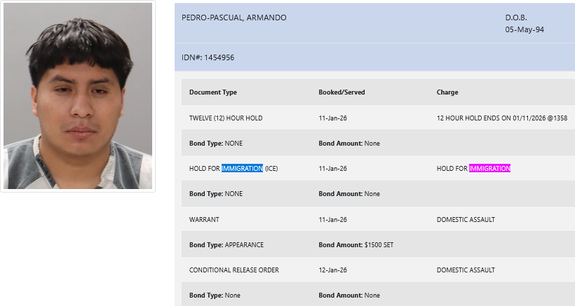 • Pascual was charged with Domestic Assault. No bond amount was set.