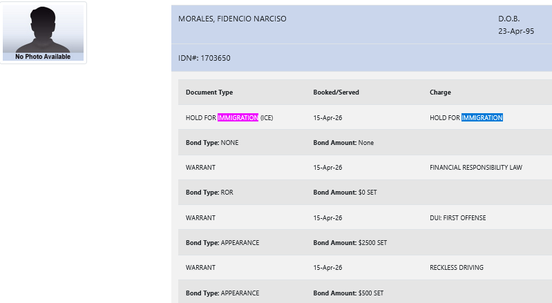 30-year-old Fidencio Narciso Morales – arrested April 15