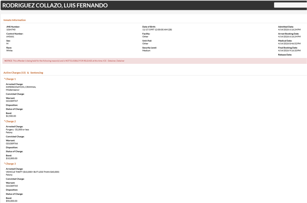 28-year-old Luis Fernando Rodriguez Collazo – arrested April 14