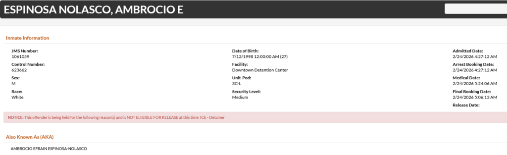 27-year-old Ambrocio E. Espinosa Nolasco – arrested February 24