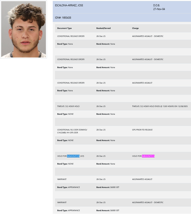 21-year-old Jose Escalona-Arraez – arrested December 28