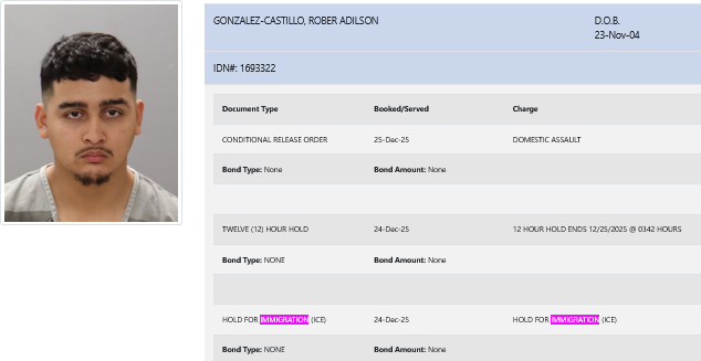 21-year-old Rober Adilson Gonzalez-Castillo – arrested December 24