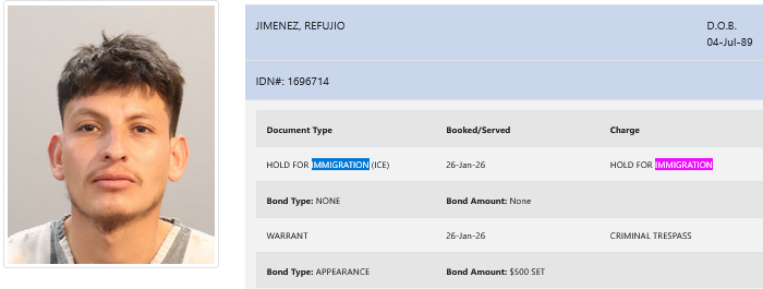 - Jiminez is charged with criminal trespassing.