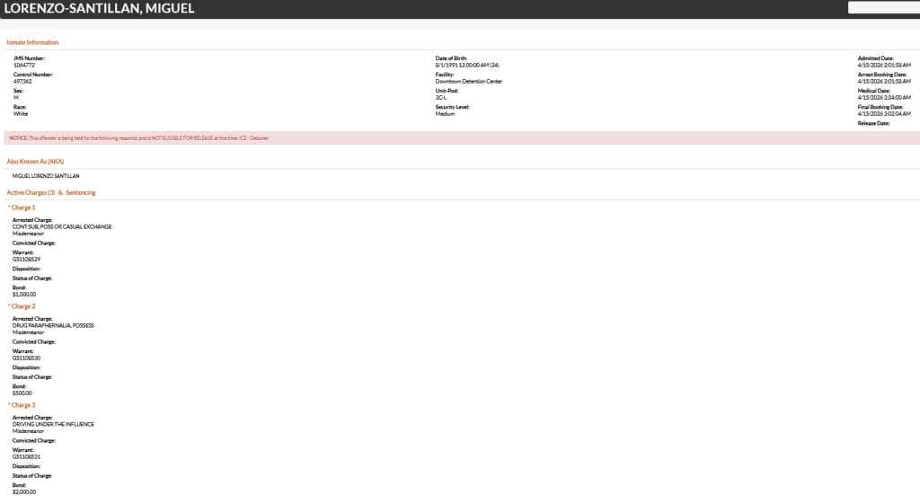 34-year-old Miguel Lorenzo-Santillian – arrested April 15