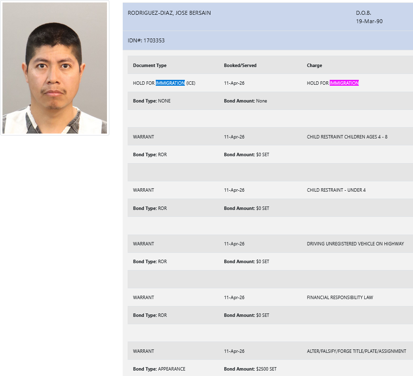 36-year-old Jose Bersain Rodriguez-Diaz – arrested April 11