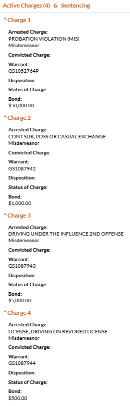 Juan Fernandez Gonzalez (Age 41) – arrested Monday, October 6th – charged with violating probation, possession or casual exchange of a controlled substance, driving on a revoked license, and a second offense of driving under the influence – bond set at $56,500.