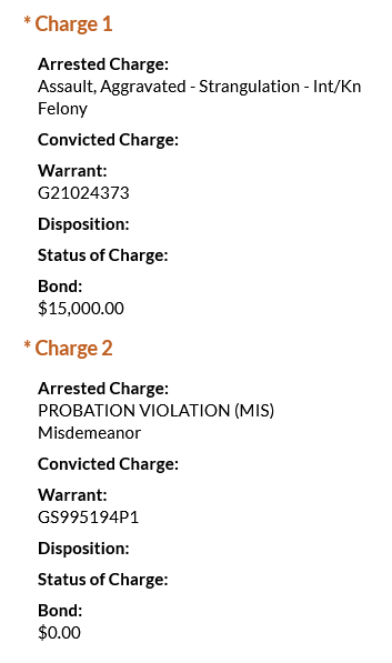 Romeo Lucas Alonzo (Age 29) – arrested Monday, October 6th – charged with violating probation and aggravated assault involving strangulation – bond set at $15,000.