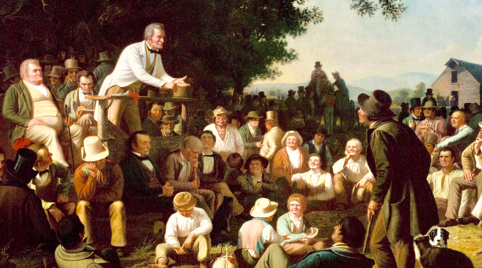 The featured image is “Stump Speaking” (1853) by George Caleb Bingham (1811-1879) and is in the public domain, courtesy of Wikimedia Commons. It has been brightened for clarity.