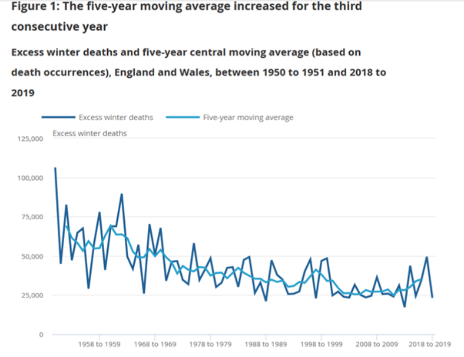 Far from people dying because of heat, far fewer die in summer than at any other time of the year. It is cold that kills, not heat. According to the ONS, excess deaths between October and March range from 25,000 to 50,000 in some years: