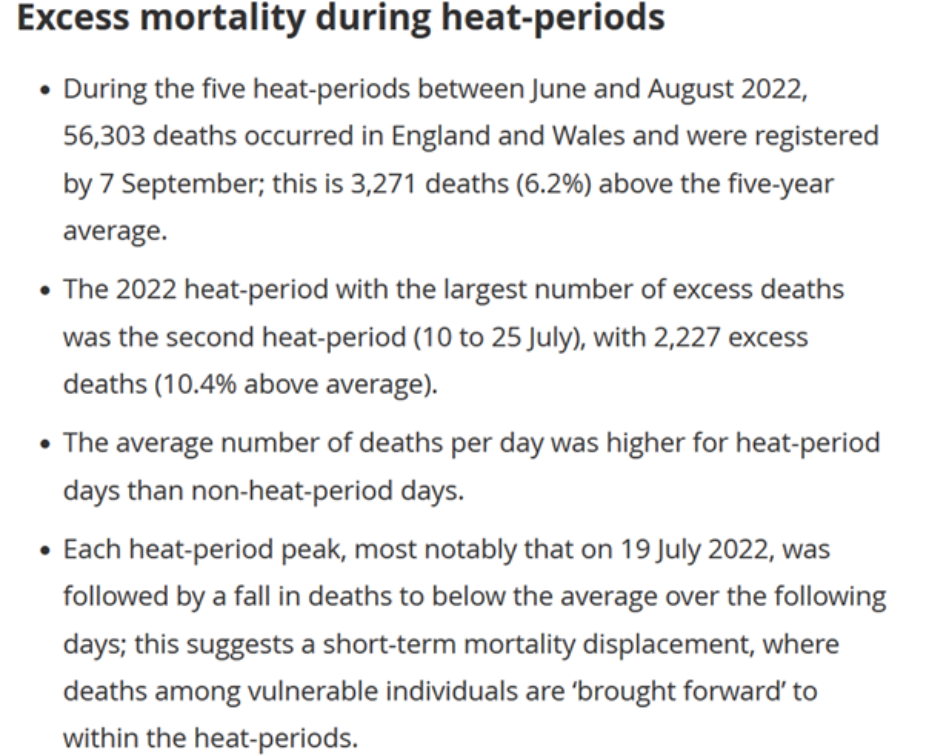 The Office for National Statistics, ONS, has looked at this topic in great detail on more than one occasion. In their most recent study, they looked at the scorching summer of 2022. Their findings were absolutely clear: